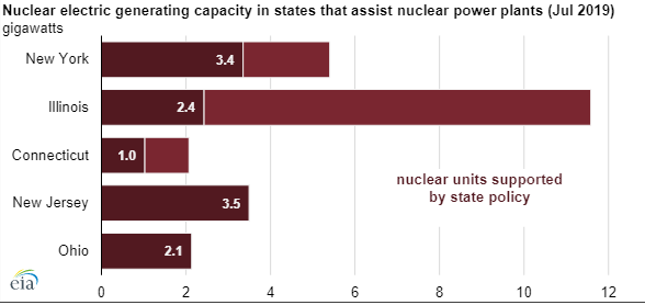 Program na podporu jadrových elektrární v Spojených štátoch už využíva päť štátov, a to New York, Illinois, Connecticut, New Jersey a Ohio. Cenové zvýhodnenie je založené na zavedení certifikátov bezemisnej výroby, ktoré majú odrážať aj environmentálne náklady emisií oxidu uhličitého.