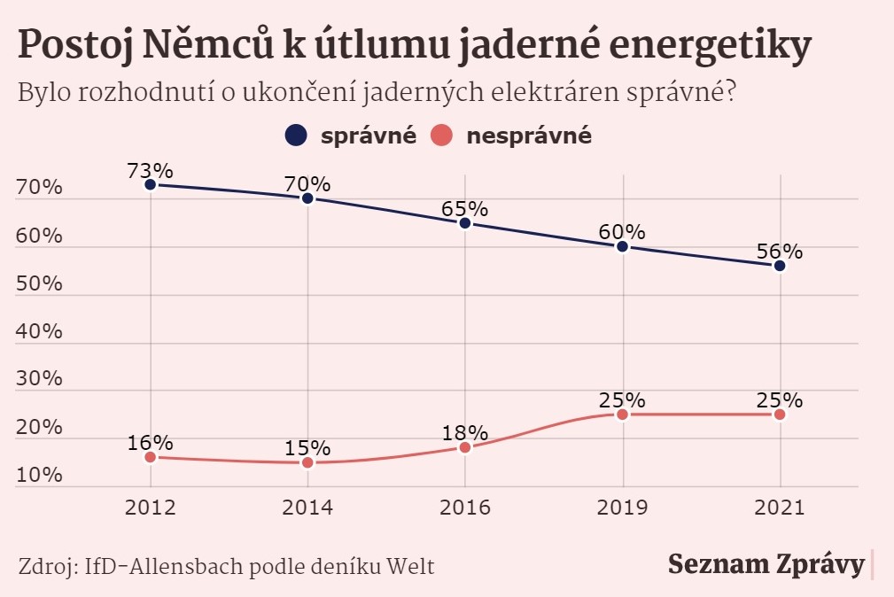Prieskum si síce zadali a zafinancovali priaznivci jadrovej energetiky, vykonal ho však renomovaný Institut für Demoskopie Allensbach a jeho závery by sme podľa denníka Welt nemali ignorovať. Prieskum zadala mimovládna nezisková organizácia Nuklearia, ktorá v Nemecku propaguje využitie energie z jadra a združenie zamestnávateľov. Zúčastnilo sa ho 1027 respondentov a prebehol medzi 1. a 13. májom.
