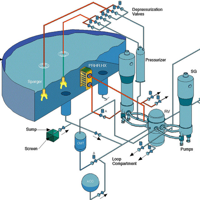 Pasívny chladiaci systém pre reaktor AP1000. Zdroj: Westinghouse