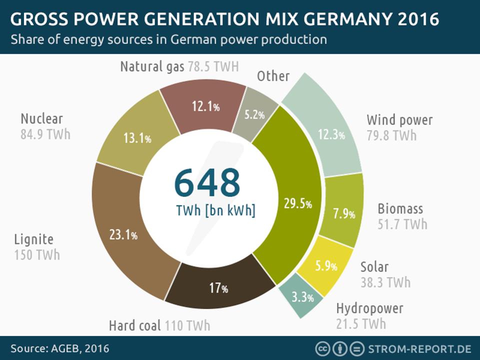 Uhlíkové emisie v Nemecku priveľmi neklesajú, a to i napriek tomu, že podiel obnoviteľných zdrojov narastá až takmer na 30 % energetického mixu v tomto roku a predstavuje vyše 50 % inštalovaného výkonu. Nanešťastie aj uhlie vzrástlo na približne 30% a spolu s nákupmi elektriny z Francúzska a iných krajín Európy sa používa na reguláciu alebo zmierňovanie neflexibilnosti obnoviteľných zdrojov.